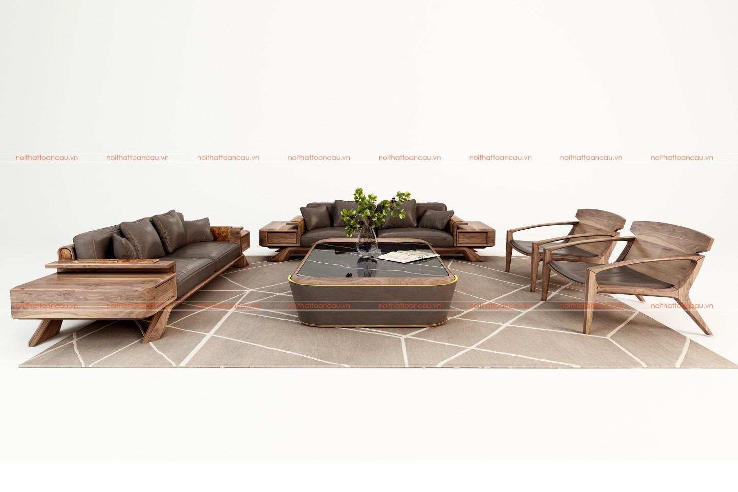 Bàn ghế sofa gỗ óc chó TC128b