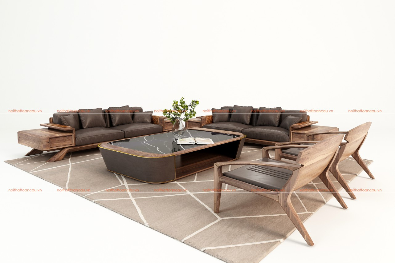 Bàn ghế sofa gỗ óc chó TC128 e