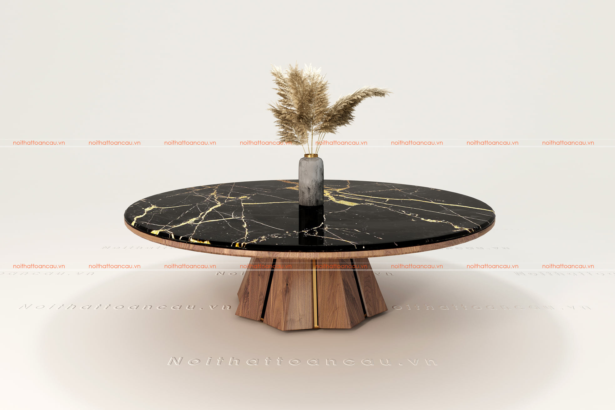 Bàn trà tròn gỗ óc chó tự nhiên kết hợp mặt đá đen ấn tượng