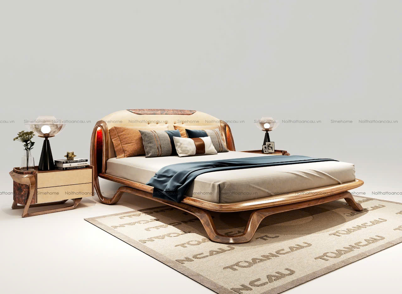 Giường Ngủ Phoenix 2 – Gỗ Sồi Nga Tự Nhiên, Phối Nu Óc Chó Sang Trọng